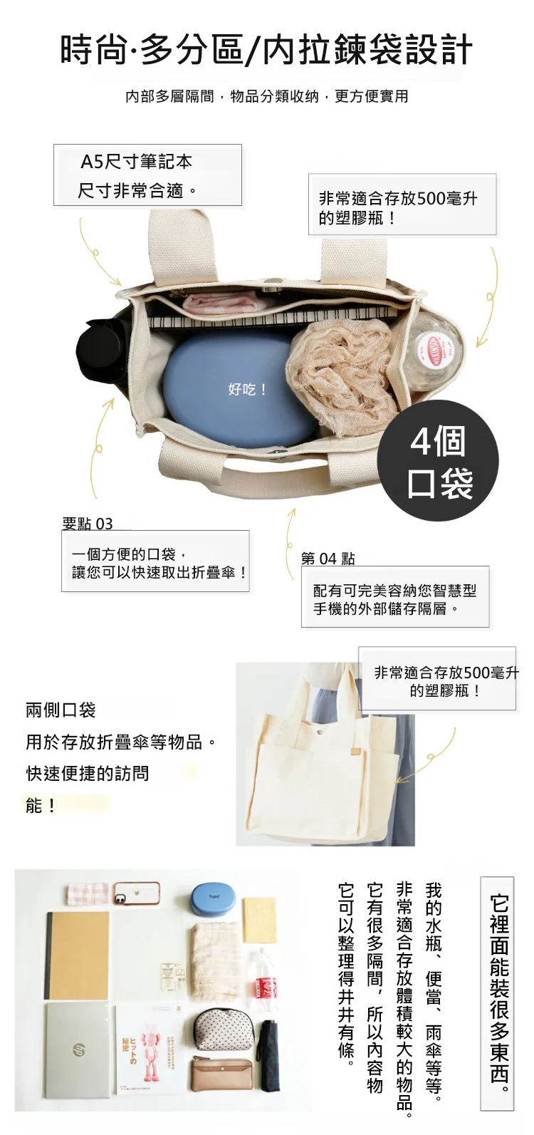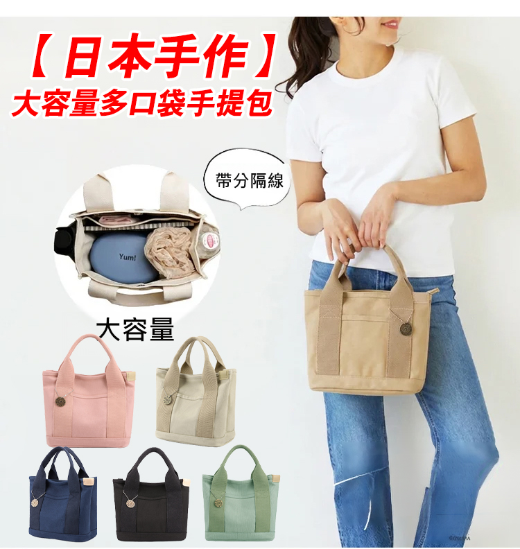 【日本手工藝】大容量多口袋手提包
